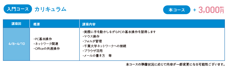 PC操作の初歩に不安を感じる方は、まずは入門コースから