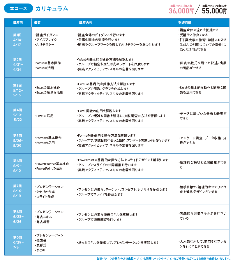 PC×プレゼン実践講座 本コース(生協パソコン非購入者)