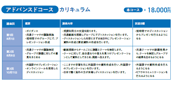 グループでのICTスキル×英語でのプレゼンまでできる アドバンスコース